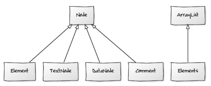 Node表示 DOM 树中的一个节点;有几个扩展Node的子类,其中包括 ElementTextNodeDataNode,和CommentElementsElement对象的Collection